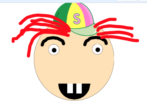 1. Create a new Sprite by clicking “Paint” button and draw hairs and put the sprite on top of the “Face” sprite. This one you have to draw a sprite like what we did in the class with eye balls, face and eye brows.