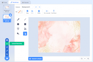 4. go to your Scratch page, go to backgrounds, and click “upload backdrop”