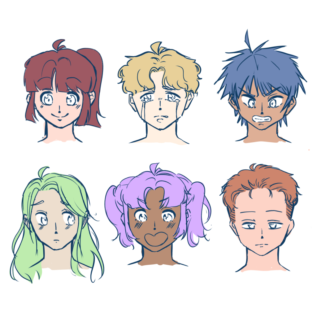 - To color the skin, make new layer underneath the hair color layer and color in the skin. Then merge the two layers together.