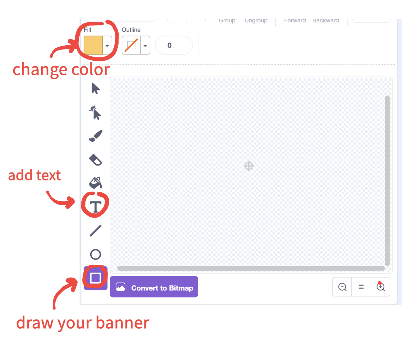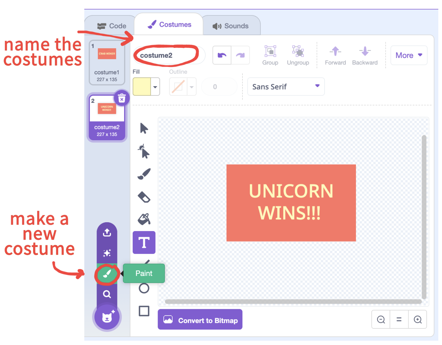 2. Draw two banners. Make sure you have TWO costumes in ONE sprite. Name your costumes.