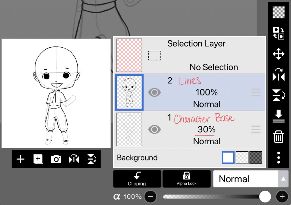 We also started a new project to draw a chibi character. First we drew a base, and we started on the lines as well.