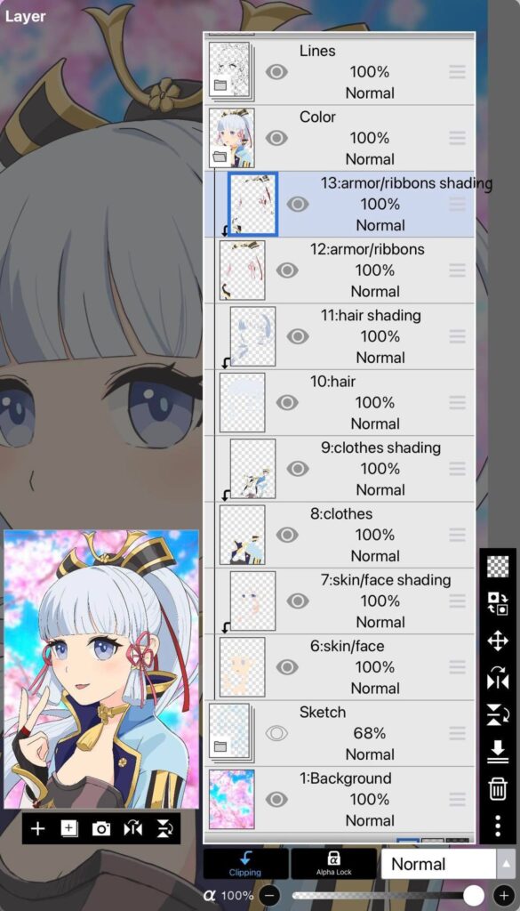 Today we finished up the rest of the shading and also added a background to the Ayaka project, which is officially finished now! Good work everyone.