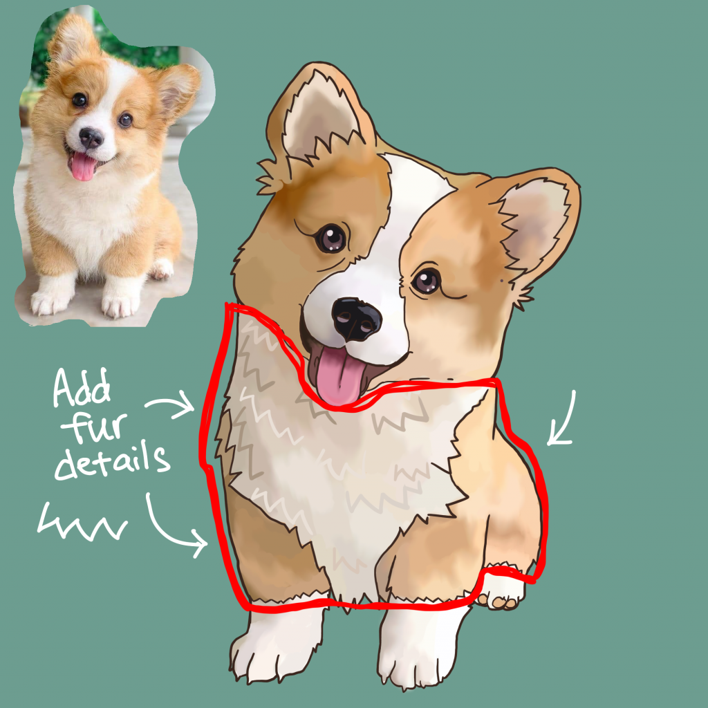 Continue to add the simple fur details to the rest of the puppy body. Catch up and fix anything from the process that we did so far, if you need to.
