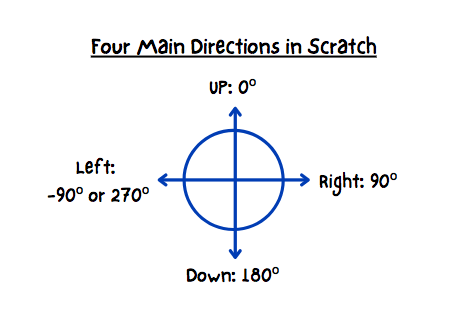 2. Memorize the 4 directions in Scratch (see the image at the bottom for help)
