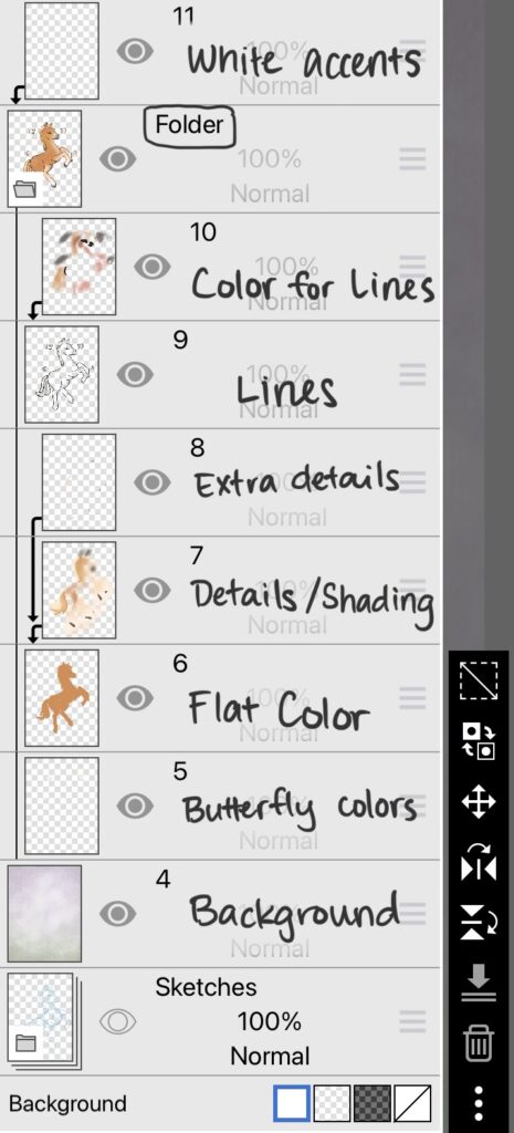- Apply lower opacity to snowflake layer, and draw some snowflakes overlapping characters.