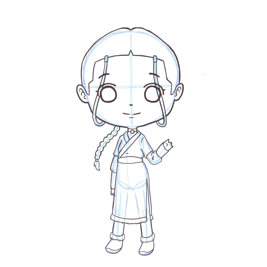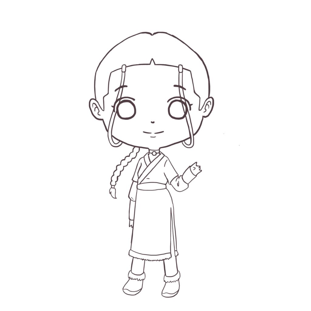 Today we continued the Katara project. We finished the lines today – finishing up her clothes and hair.