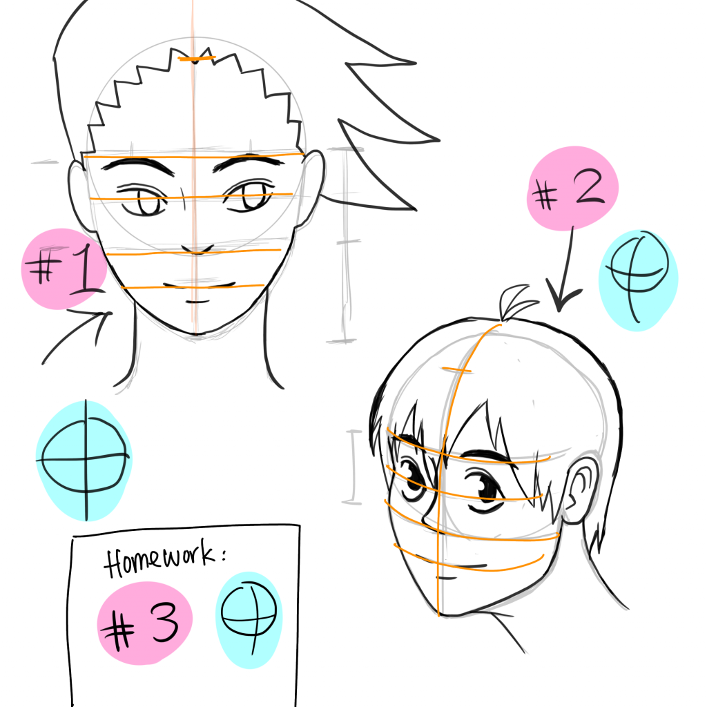 For homework, please draw a head in a 3rd position: Quarter turned to the right. Have different layers for your sketch, and for the refined lines of the head and face. You don’t need to color it, but you can. Make sure to do color on a different layer if you choose to.