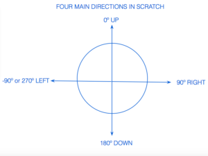 3. If you do not have the image below (the one that says “Four Main Directions in Scratch”) in your notes, copy the image on a piece of paper and save it for your notes.